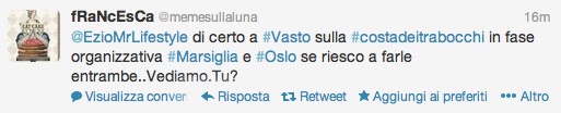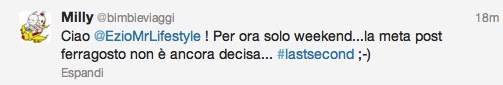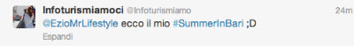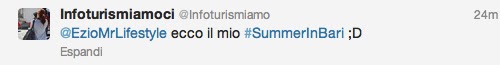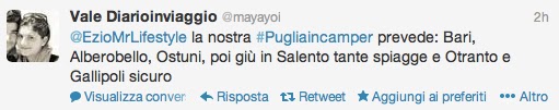 Per qualsiasi informazione sulla Puglia, io non ci sono nelle prime due settimane, ma vi lascio nelle mani di due LOCAL EXPERT d’eccezione. Mandate un tweet a @infoturismiamo 🙂 TOP