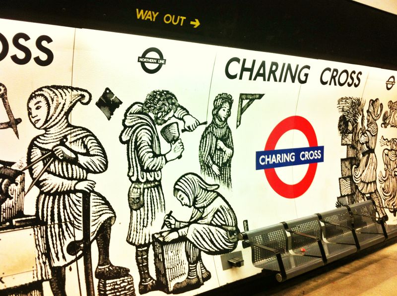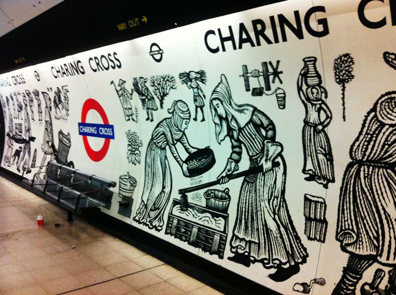 Ho iniziato a dare attenzione al tempo passato nella Tube da quando nel mio tragitto abituale per tornare a casa mi sono soffermato a guardare la stazione di Charring Cross e senza sapere il perché, sono sceso incuriosito dalle rappresentazione sulle pareti.